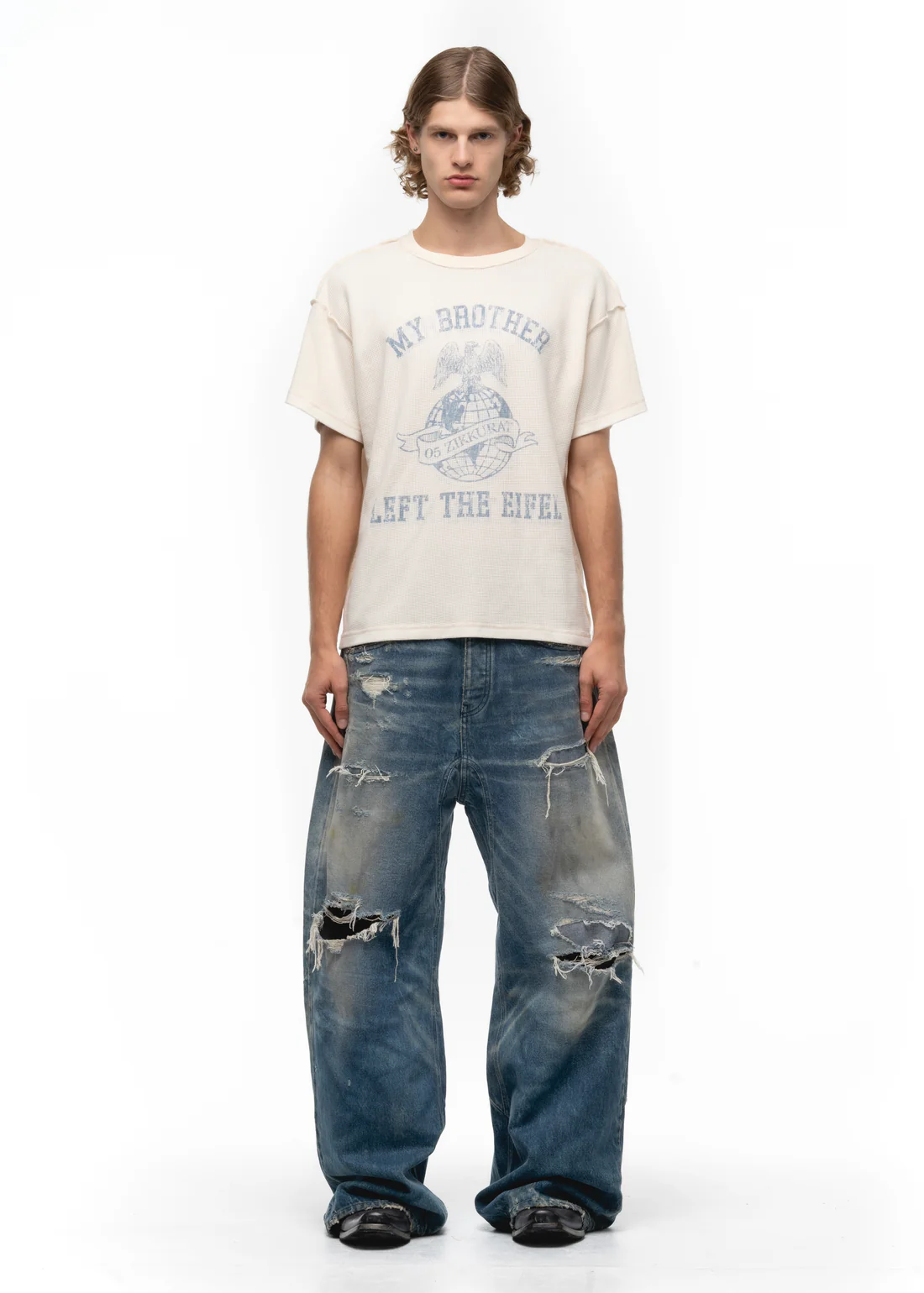 NO FAITH STUDIOS EIFEL SUNFADE WAFFLE COTTON T-SHIRT WHITE